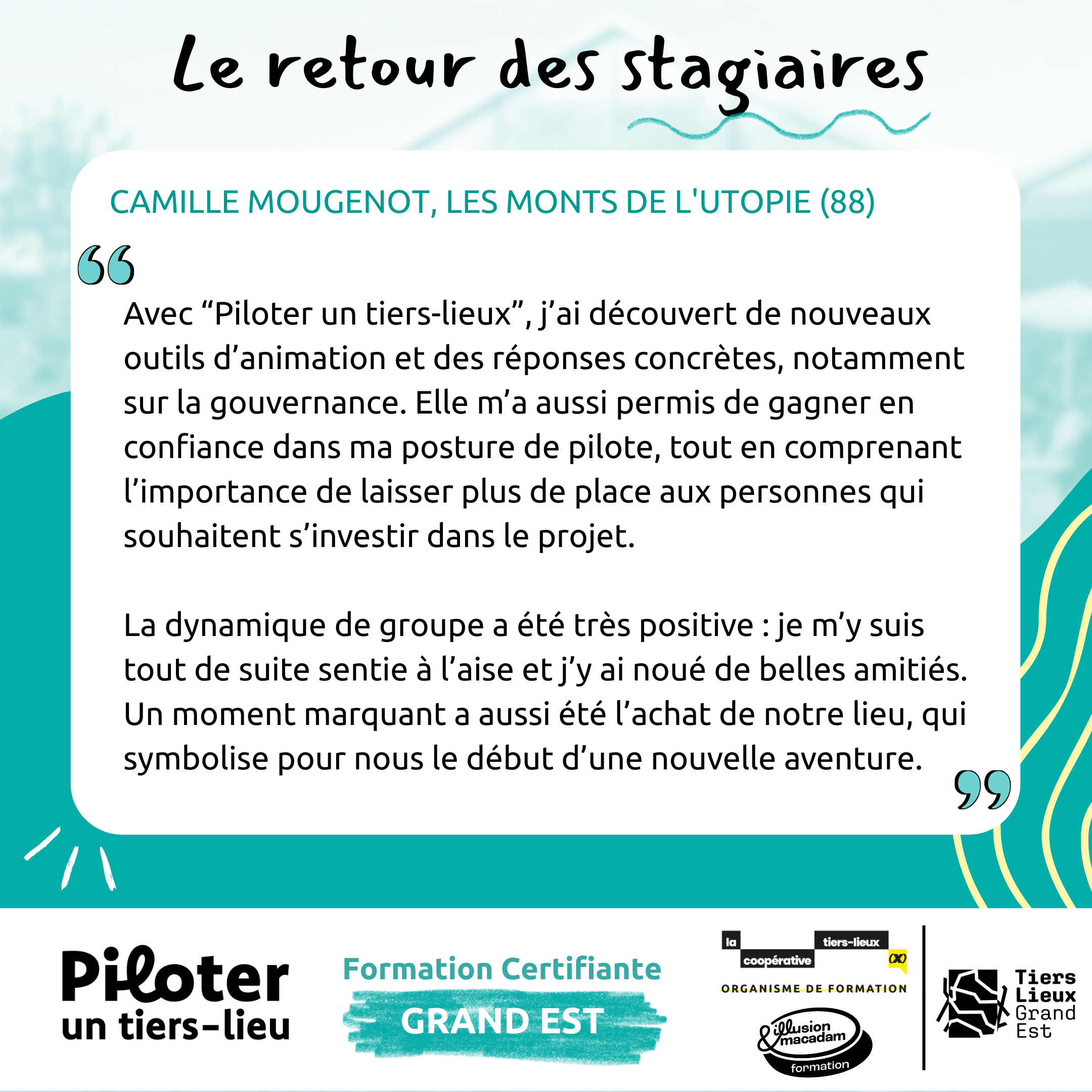 La formation “Piloter un tiers-lieu” vise à professionnaliser les personnes qui pilotent des tiers-lieux en leur donnant des compétences de gestion, d’animation de communauté et de développement de projets.